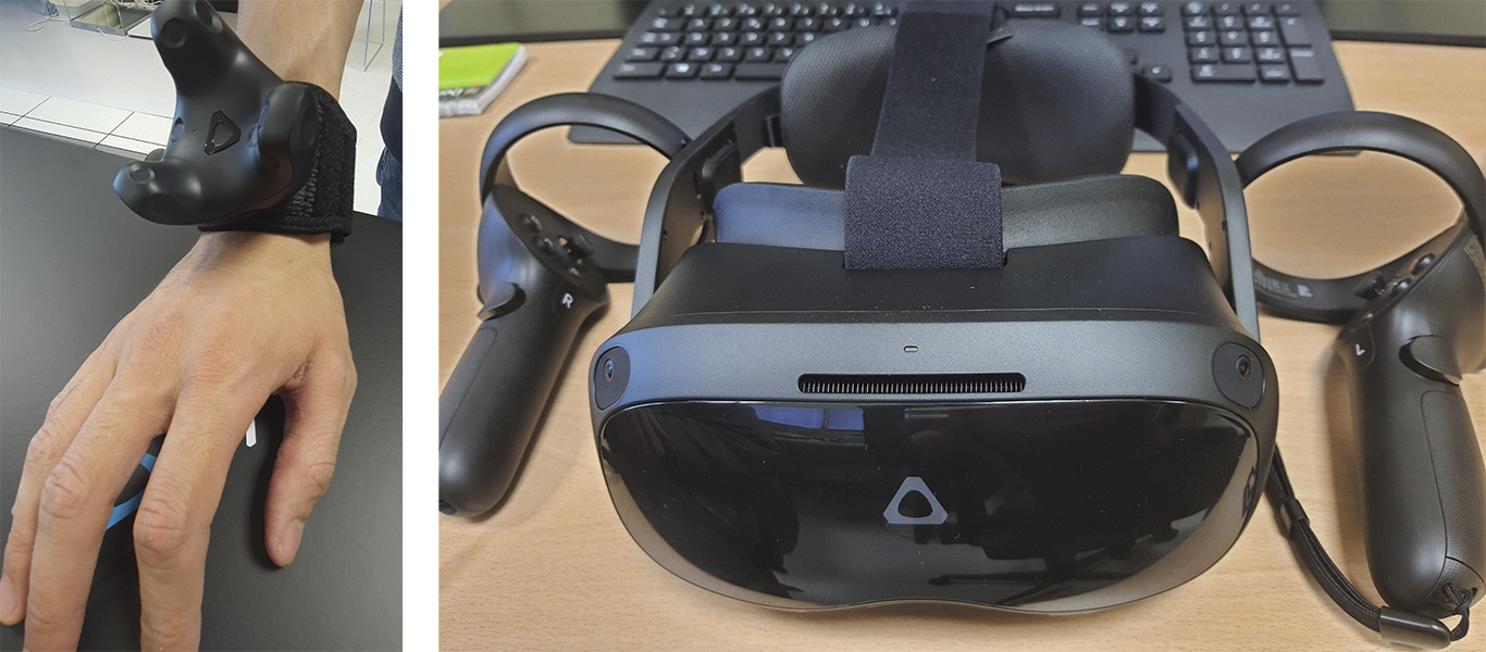 The platform has also 3 complete virtual reality equipment (2 wired HTC Vive Pro headsets, 1 wireless Vive Focus 3 headset, 4 base stations and 7 trackers) allowing to develop more complex and ecological environments than those observed in laboratory.