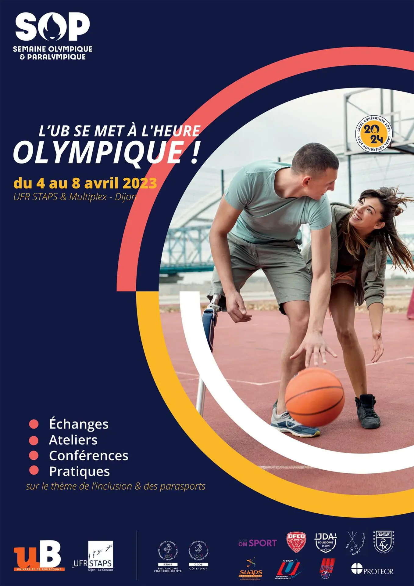 A lʼUFR STAPS de Dijon, nous avons choisi de sensibiliser différents publics sur 5 journées spécifiques du 4 au 8 avril 2023 au sein de nos locaux et à la salle Multiplex du Campus Universitaire.
